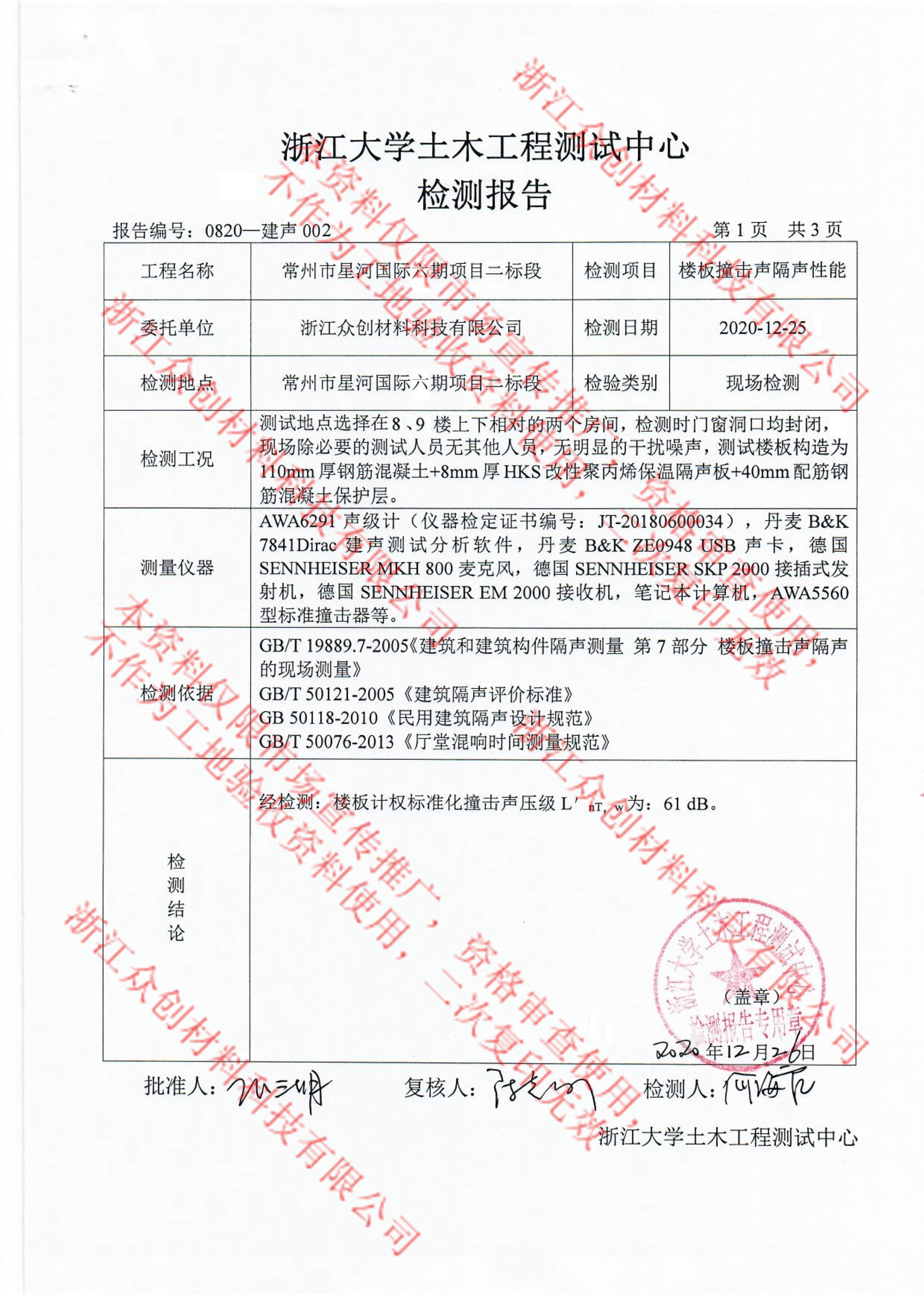 根據測試在同等隔音效果下,HKS改性聚丙保溫隔聲板厚度更薄,占用層高更少,撞擊隔聲改善到62dB。
